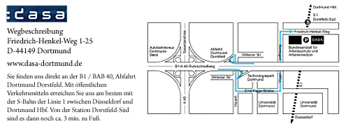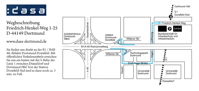 Friedrich-Henkel-Weg 1-25, D-44149 Dortmund. Die BAuA ist eine nachgeordnete Behörde des Bundesministeriums für Arbeit und Soziales.